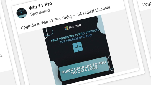 Sahwa@reddthat.com to Technology@lemmy.worldEnglish · 3 days agoWarning: Facebook Ads for Free Windows 11 Upgrade Will Infect PCs With Malwareplus-squareuk.pcmag.comexternal-linkmessage-square7linkfedilinkarrow-up110arrow-down10